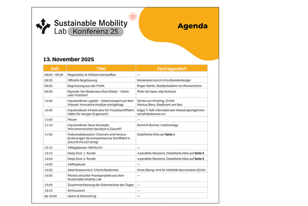 Melden Sie sich an, diskutieren Sie mit, geben Sie neue Impulse für die Zukunft der Mobilität am und auf dem Bodensee und freuen Sie sich auf spannende Einblicke aus Forschung und Praxis!